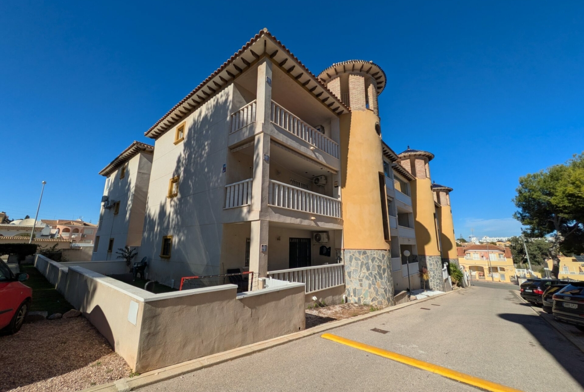 Imagine cooling off in the community pool during the hot summer days or sunbathing on your private solarium. The location is unbeatable, with shops and supermarkets such as Aldi and Mercadona just a few steps away, as well as a wide range of bars and restaurants nearby. If you are a golf lover, the famous Villamartín course is very close by, offering you the opportunity to enjoy your favorite sport in a privileged setting.